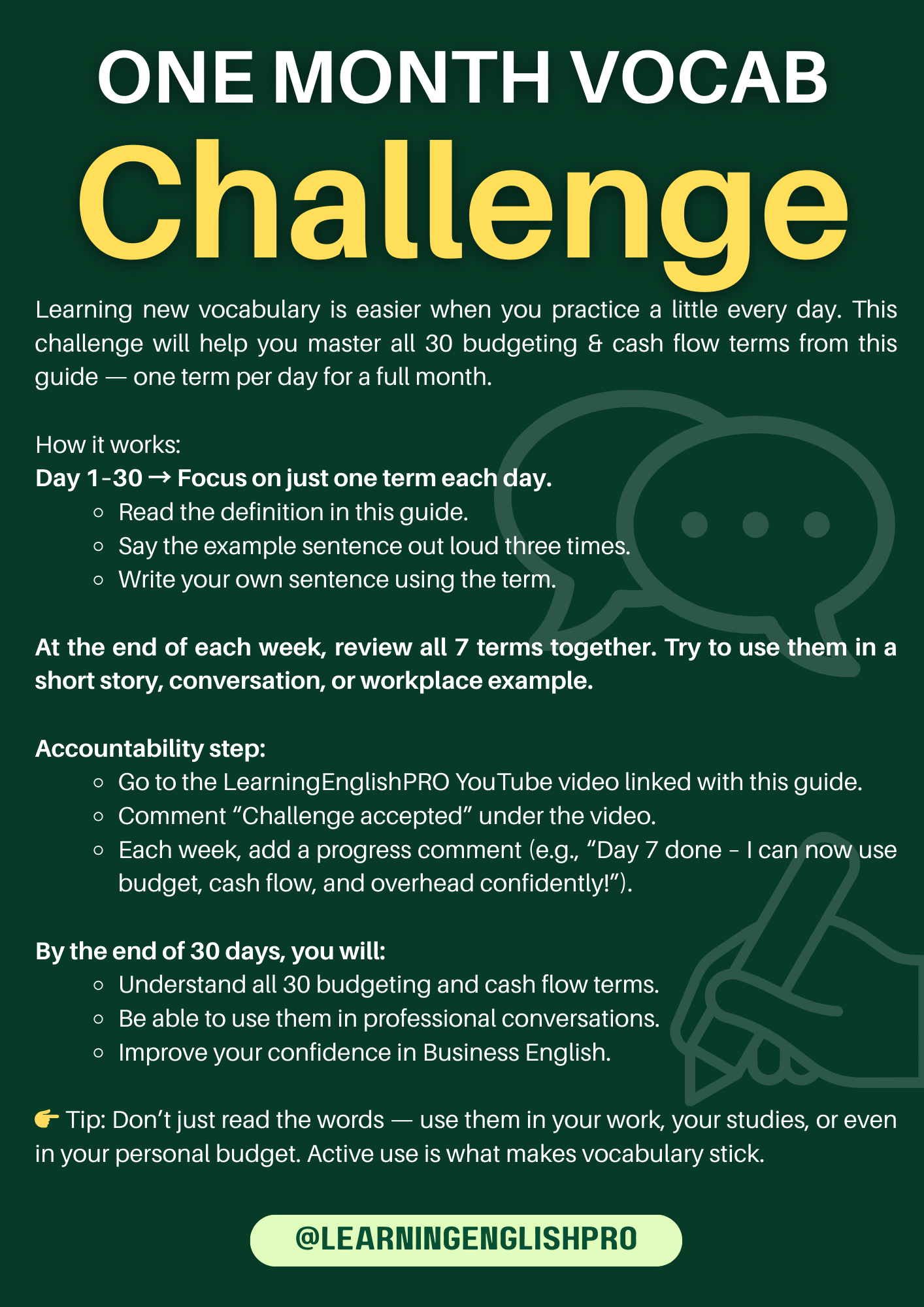 Business English, English Vocabulary, Cash Flow, Budgeting, Finance English, Professional English, ESL, English for Work, LearningEnglishPRO, PDF Guide, English Challenge, English for Business Students